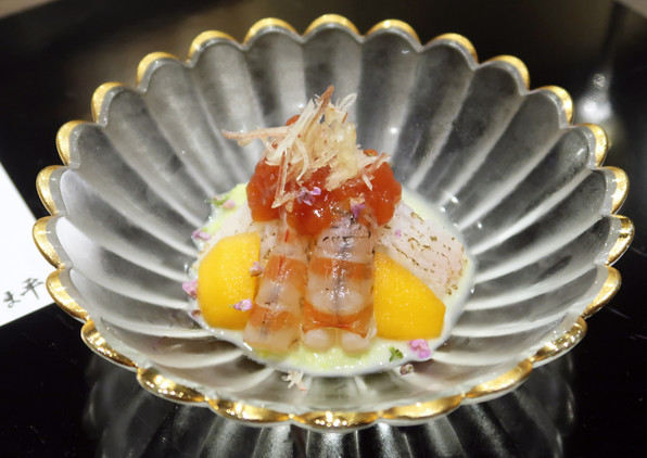 ●お兄さん和食、弟さんフランス料理で一緒にコースを組み立てるというユニークなお店です。要素的には和が6.5、フレンチが3.5という比率かしらん。
