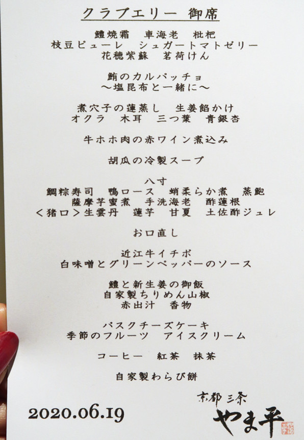 ●「京都 三条 やま平」さん、今回も心づくしのお料理でもてなしてくださいました。
