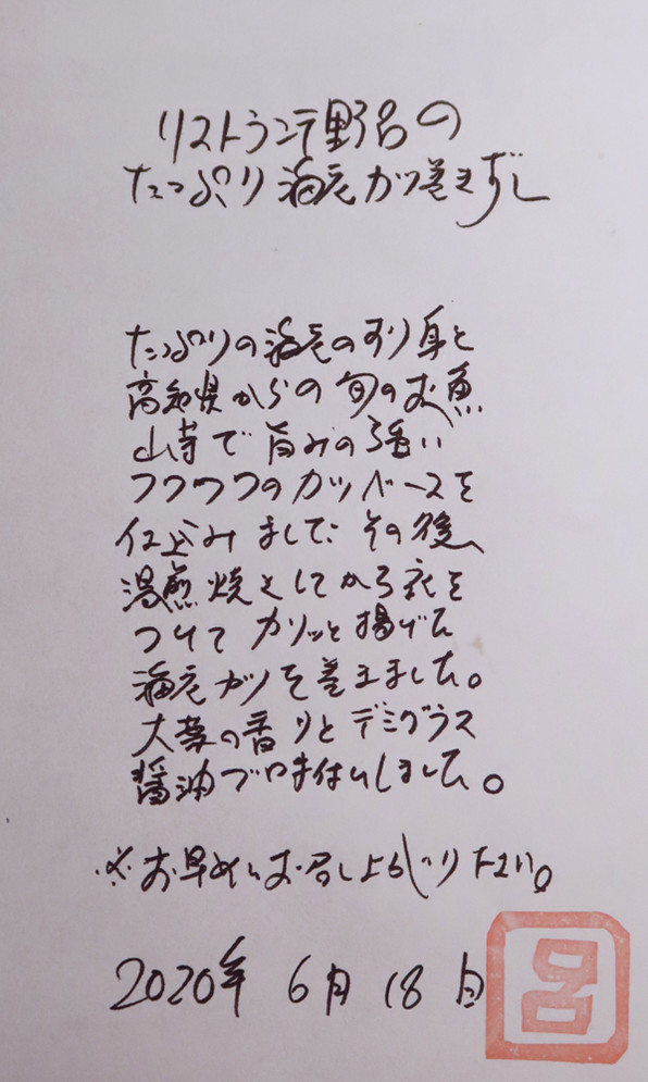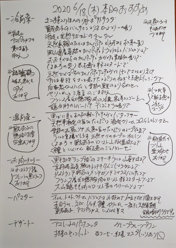 「リストランテ 野呂」6月18日(木)20時過ぎ、188回目。