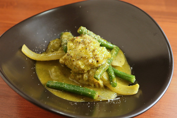 ●鱧、三度豆、新玉ねぎのジェノヴェーゼソース和え。これびっくり旨い。熱いジェノヴェーゼソースうっまい。