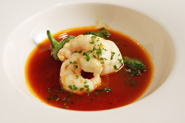 ●ぼたん海老と、万願寺とうがらし、京みどり、スープドゥポワソン。旨旨旨旨旨馬旨旨。(← ひとつ間違いを見つけましょう\(^o^)/)