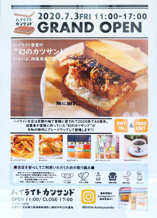 「ハイライト食堂」さんが創業60周年の今年新しいお店をオープンされます。7月3日(金)開店の「ハイライトカツサンド」、「ハイライト」さんの看板メニューであるチキンカツをサンドにして、店内でもテイクアウトでもいただけるようにしたものです。