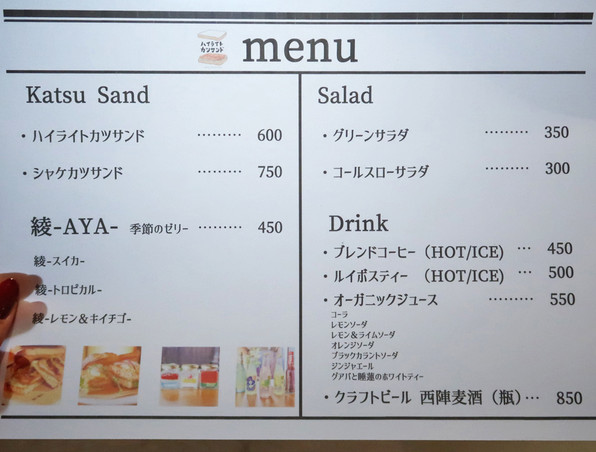 ●ハイライトカツサンド 600円、カフェ(「オカフェ」さんです) 400円。