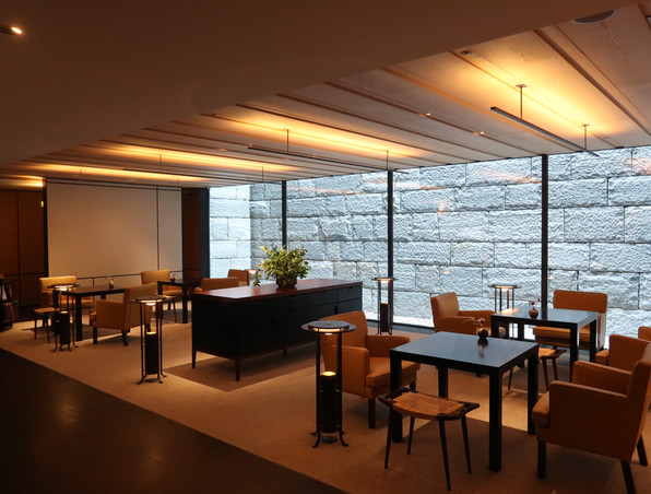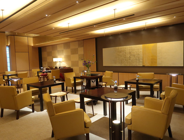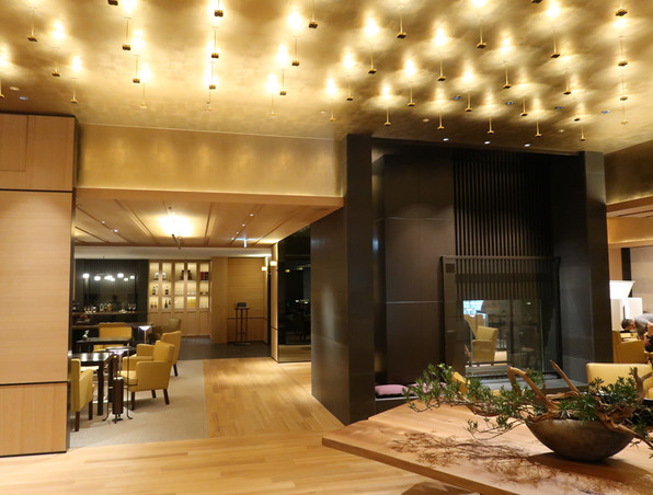 今回伺ったのは、カジュアルなカフェレストラン「KYOTO BISTRO」ではなく鉄板フレンチの「八坂」でもなく、黄金の天井と壁でいとも優美な雰囲気のラウンジスペース、「ザ リビングルーム」でした。