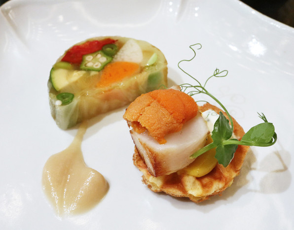 帆立貝と雲丹 コーンワッフル(香ばしい、美味)
