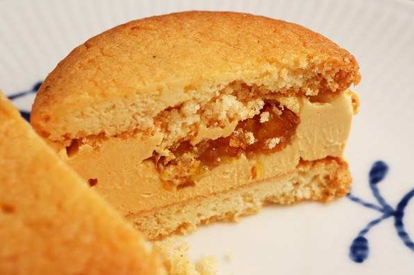 ●塩気の効いたサブレに、分厚くバタークリームがはさまれていて、これが絶妙に旨いカラメル風味。中にほろ苦+酸味鮮やかなオレンジのコンフィチュール。