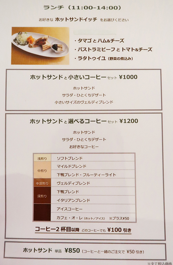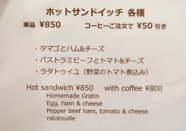●ホットサンドイッチが3種類あります。これは単品のメニュー。