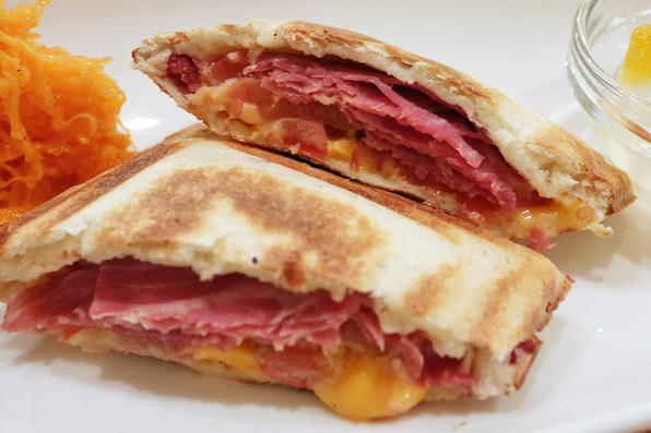 塩気のパストラミビーフにチーズとろりんの旨みが合わされ、トマトの酸味がおいしさをさらに引き上げます。あったかいサンドイッチよいです\(^o^)/\(^o^)/