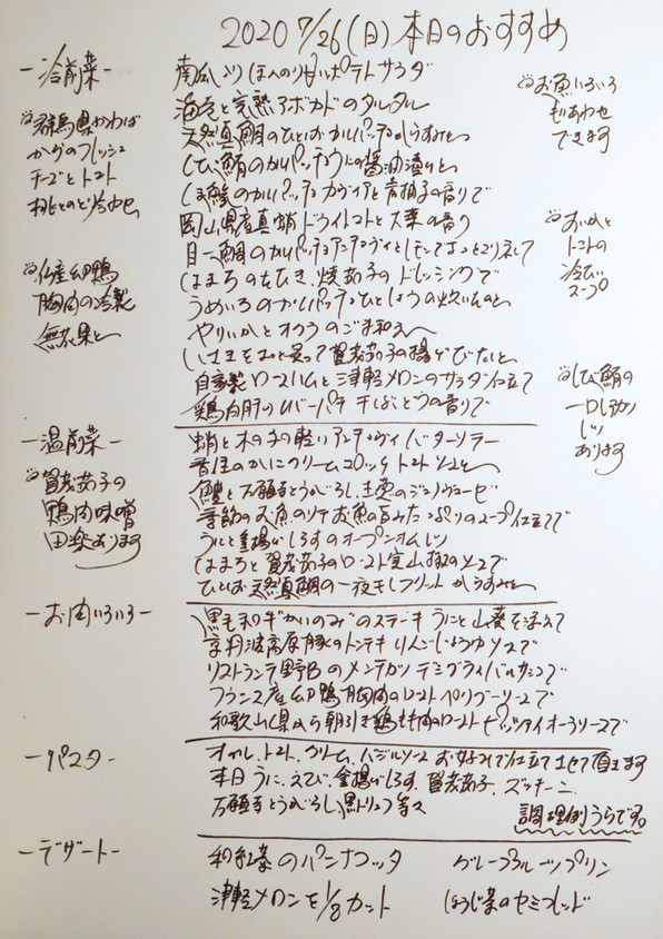 「リストランテ 野呂」7月26日(日)20時半~ 195回目。
