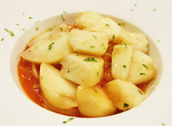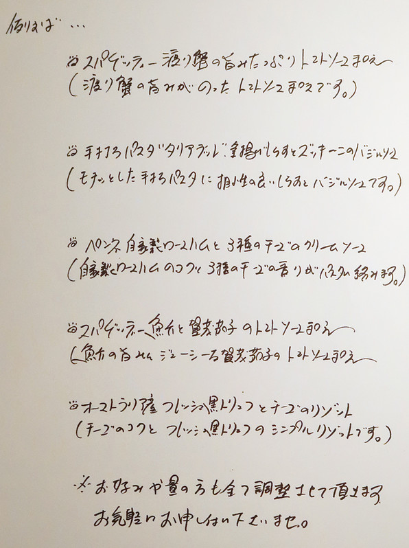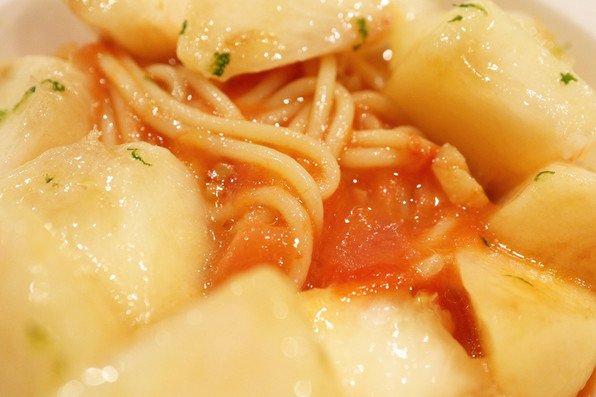 ●トマトソースがまたおいしい。和食のお椀やおだしのように、そのお店のトマトソースの味というものがありますが、なじんだ味、安心の味、粋な味。本当においしいと思う。
