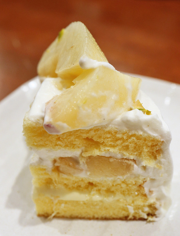 最高においしい桃をここでも使って、かわいいケーキを作ってくれました。のりきありがとうよ。
