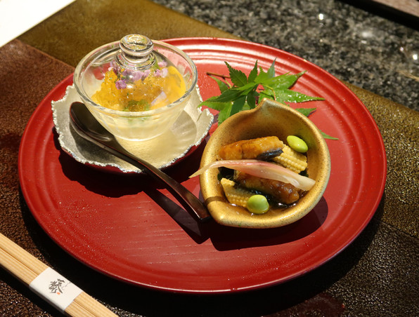 ●この美しいお皿はザ・リッツ・カールトン京都「水暉」三浦雅彦さんからの開店祝いだとか。さすがです\(^o^)/ センターを飾るにふさわしいですね\(^o^)/\(^o^)/