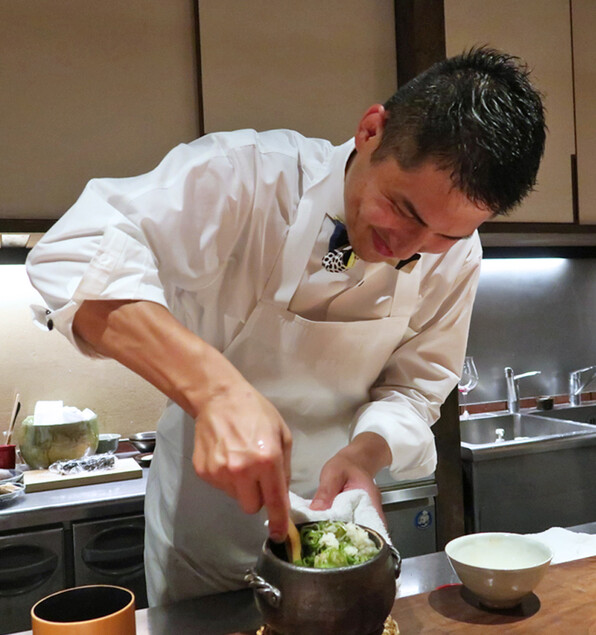 大阪出身、滋賀県で18歳から修業したのち「星のや」さんや「宮川町 水簾」さんなどに勤めて来られました。