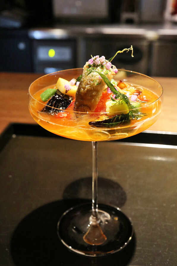 ●一品め、グラスで供される先付から心奪われました。ものすごくお手間がかかっていました。
