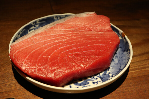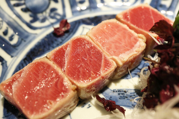 まぐろ節とかつお節でとったまぐろコンソメがお猪口サイズで添えられました。