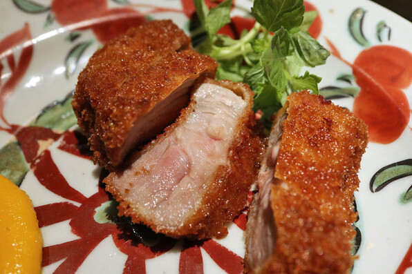 にんじんのソースと、ブルーチーズ(デンマーク)が添えられました。ブルーチーズと豚肉はものすごく合いますね。