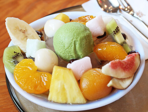アイスクリームか、抹茶アイスクリームを追加すると同時に、フルーツが盛り盛りにのってくる、と。