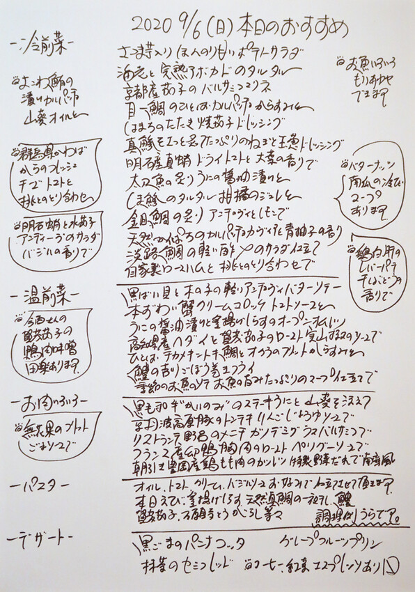 「リストランテ 野呂」9月6日(日)20時30分~、202回目。品数少なめ、でも量はたっぷりいただきました。