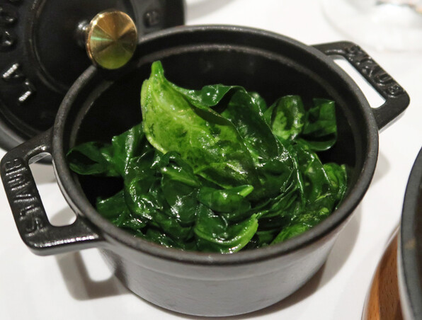 ●いとよりの下にも敷かれていたほうれん草が、また別にたっぷり添えられました。色鮮やかな上、食感が日本風と思ったなあ。フランスの伝統的なビストロなんかではたいがいクタクタクタで、バターひたひた、これ離乳食か?と思うんだけど。それがしかし懐かしい(T_T)(T_T)