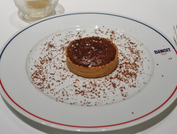 ●デセールにはタルトショコラです、当然\(^o^)/ 割ると流れ出すフォンダン式です。上にパラパラとゲランドの塩。これは理想的な香味でした。
