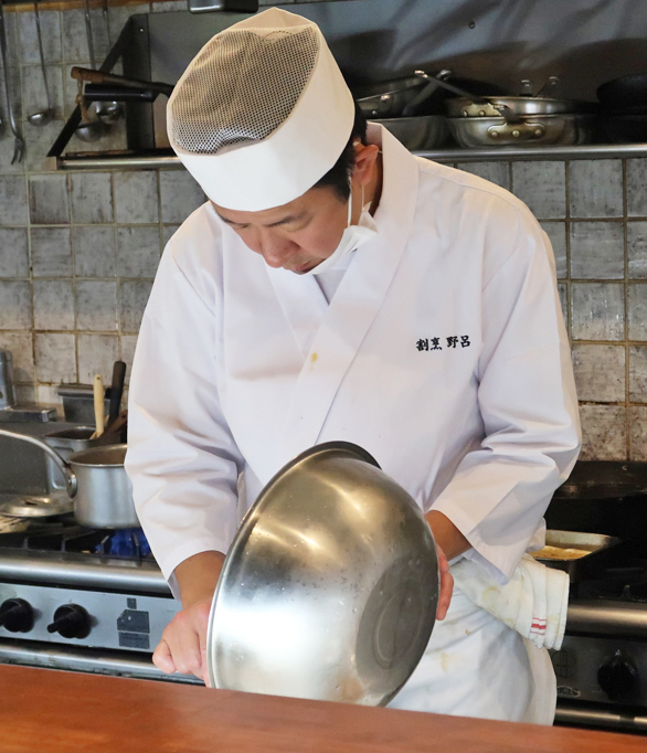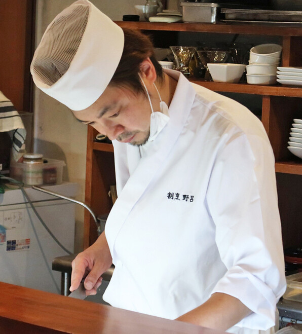 ●冗談から始まった「リストランテ 野呂」の「割烹 野呂」ですが、のろっち=シェフの野呂和美さん、今や白衣がよく似合っているのです\(^o^)/