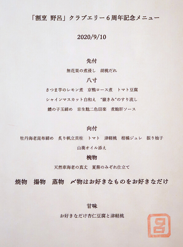 いずれにしても、「リストランテ 野呂」スペシャルヴァージョンの「割烹 野呂」、次は12月にお願いしてきましたし、今後も末永くよろしくお願いいたします\(^o^)/\(^o^)/
