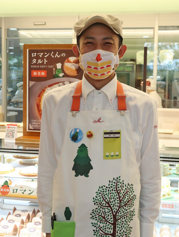 エプロンかわいい、マスクはいちごのショートケーキです。にこにこしてしまいます(^o^)/