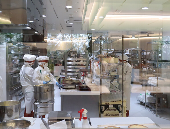 ●ガラスごしに、ひろびーろとした厨房が見えます。仕事しやすいだろうなあと思います。