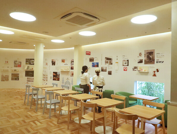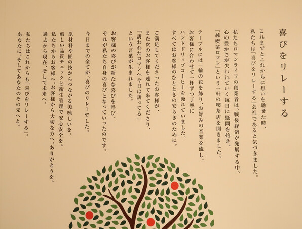 ●2階の、社員やスタッフさんたちの休憩室に、「ロマンライフ」さんの歴史が物語られていました。