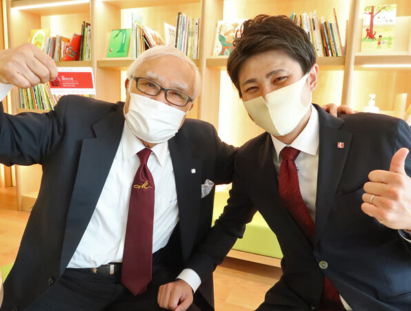 ●よくしてくださいましたー\(^o^)/\(^o^)/ 奥がマーケティング部の秋田博一さん、手前が企画部の徳本智史さん。
