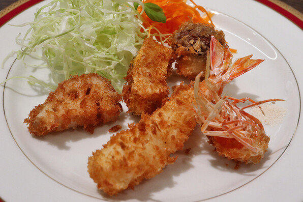 ●これはチキンカレーに天然車海老フライを合わせていただいたものです。
