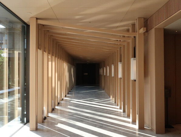 ●回廊はこんな粋なデザイン。アンドレ・フーさんによるものと教えていただきます。