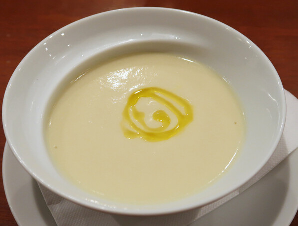 ●弘前りんごのスープ 冷製で。りんごそのものの風味を楽しみました