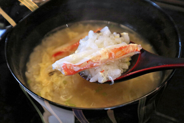 ●蟹がたっぷり入った蟹雑炊。熱々で身体ぽかぽかになりました。