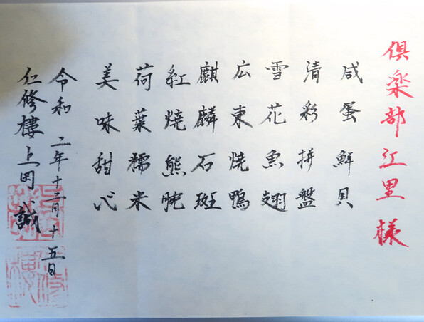 ●「仁修樓」店主の上岡 誠さん、スタッフの皆さん、ありがとうございました。
