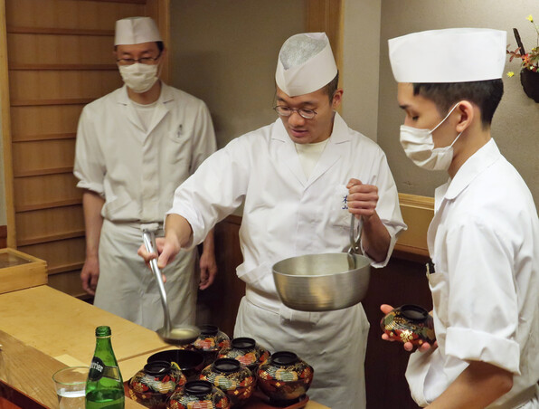 ●木山義朗さん、味見で一瞬マスクはずされています。