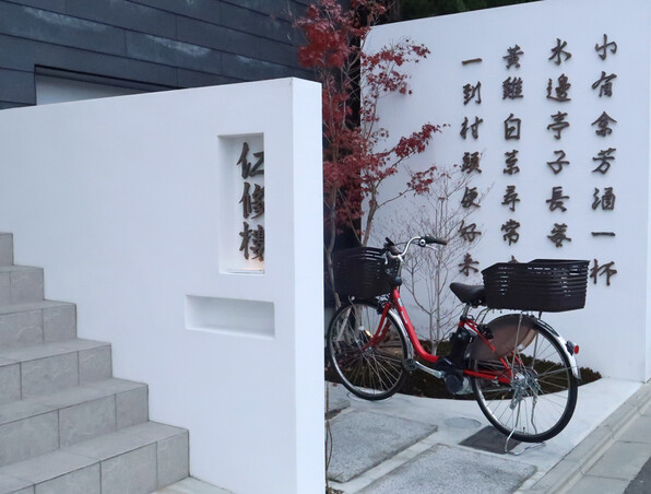 店主の上岡 誠さんの書かれる漢字がすてきだと思う・・・エントランスの壁の漢字も、陶芸の技術を生かして、ひと文字ずつご自身で作ったと伺いました。
