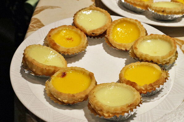 ●焼き立てほかほかのエッグタルトとミルクタルトをいただき、