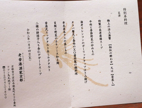今年1月から始まったクラブエリー第2木曜、今回1月14日(木)は「老香港酒家京都」さんにお願いしました。