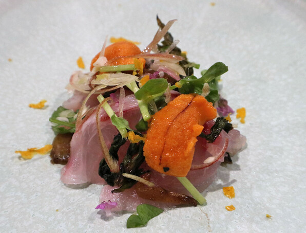 これが圧倒的でした。のりがこれほど香るかと。オムレツ本体に混ぜ込まれ、上にものせられていて、鮮烈な香味なのでした。このお皿のためだけでも来てよかった。大満足でした。