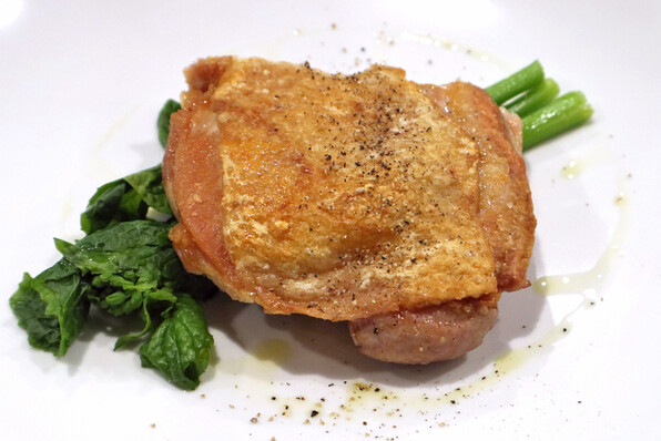 この鶏肉がまた味濃くて旨かったです。外側パリパリ、中ふんわりのジャストな焼き加減、ぴたりと決まった塩加減でした。