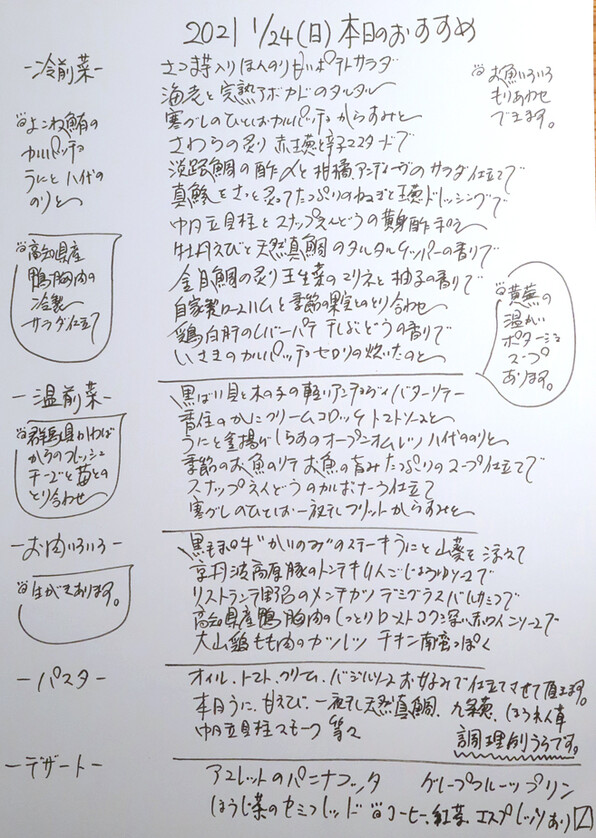 2021年1月24日(日)18時45分~「リストランテ 野呂」228回目。