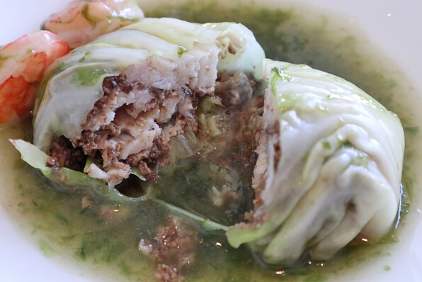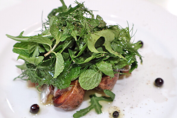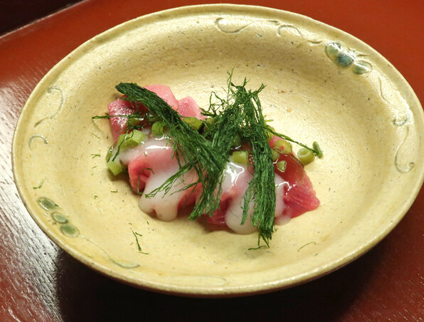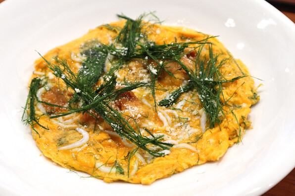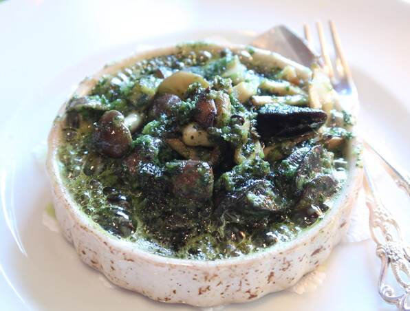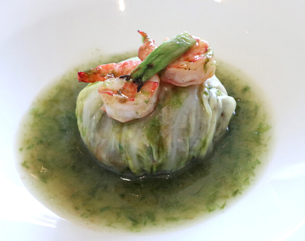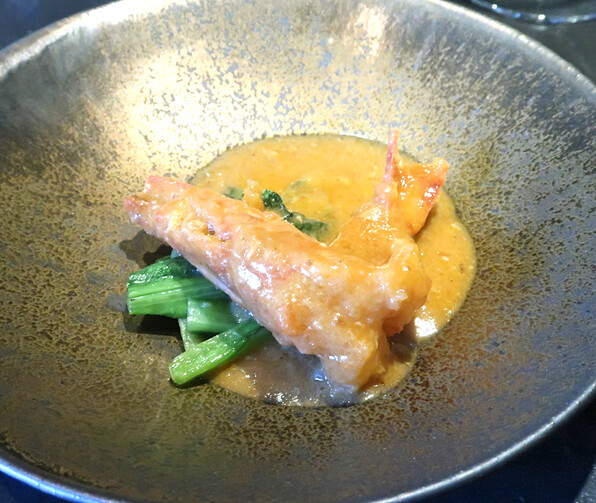 ●青のりソースが香りよく、キャベツの甘み海老の旨味が鯛を引き立てていました。ふきのとうの香味は、わたしにはちょっと苦い感じがしました。ごめん。苦いのは、人生だけでいいのです\(^o^)/\(^o^)/