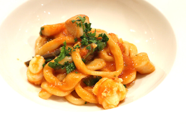 ●これおいしかったです!!! かつおベースに貝や魚の旨味が合わされたおだしです。そのスープに麺がよく合って、うっまいのです。
