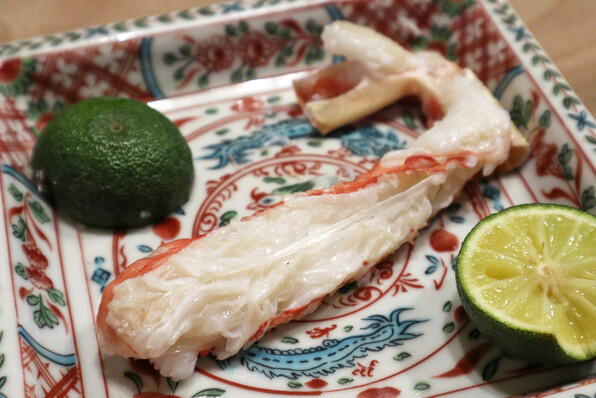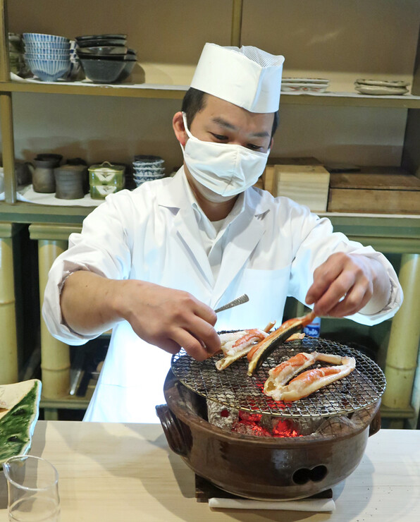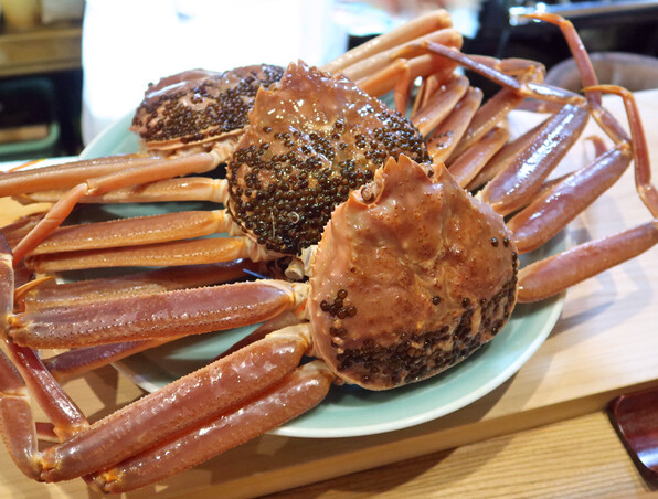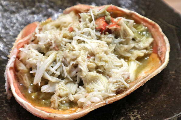 ●今年は間人にはこだわらず、津居山港や柴山港からの蟹だったそうですが、わたしたちは全くOKです。6名で5杯ほどいただくのです。蟹しんじょうのお椀に蟹刺しに蟹の天ぷらに里芋蟹包み・・・と