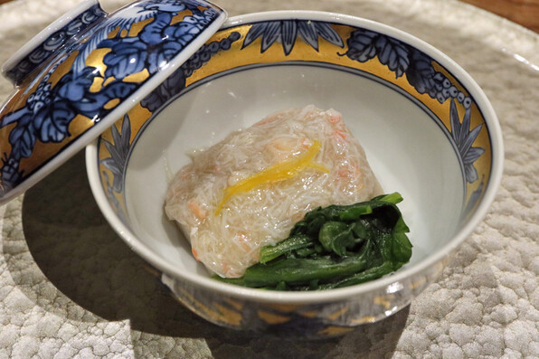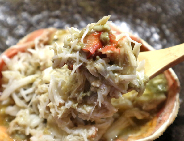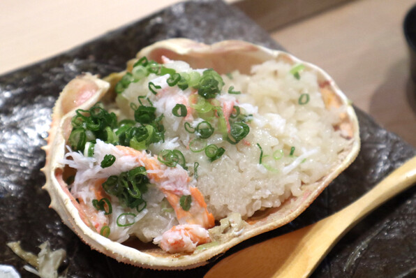 ●ご飯は蟹ご飯でした。甲羅に盛り上げてくださって、おかわりもお好きなだけどうぞと。しかしすでにお腹いっぱいいっぱいなのでした。