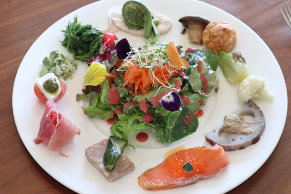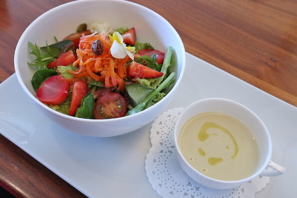 クラブエリーからの帰り道、しばし野菜たっぷりのお昼をいただいて、午後の仕事に備えようではないの。