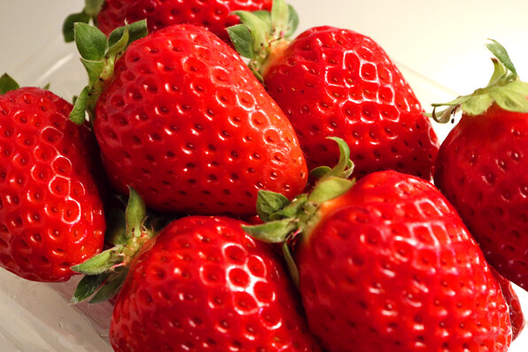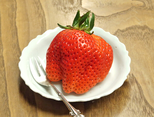 ●いただきもののいちごありがとう之図。和歌山の「まりひめ」といういちご。きれいな色、深い味、上品な甘さがよいです。