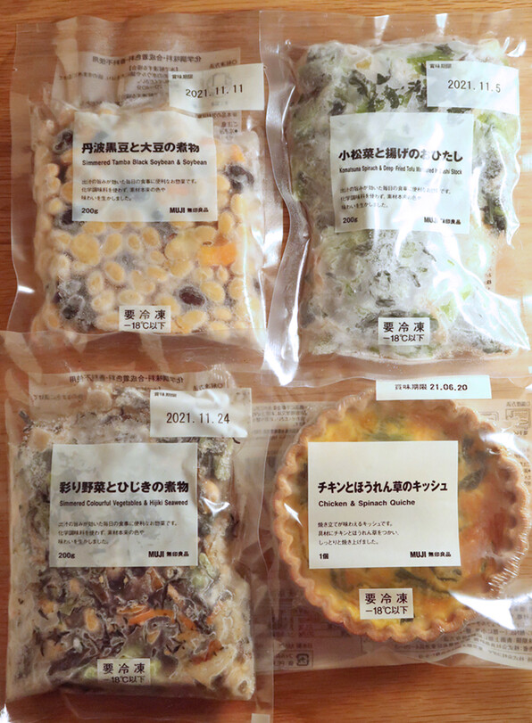 ●買って帰ったのはこれら4品。キッシュなどは予測がつきますが、葉っぱものなんかは解凍した時どんな感じなんかしらんと興味を持って買ってきました。