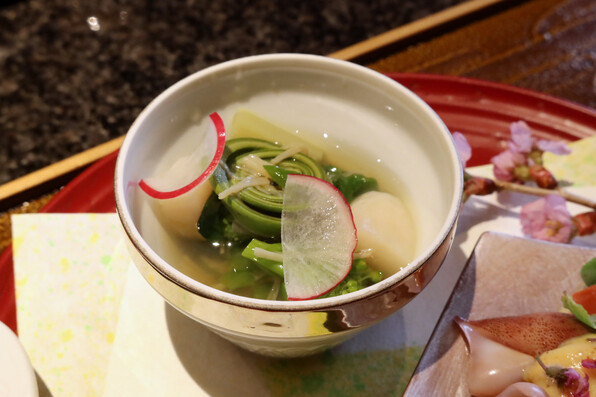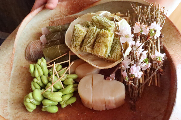 ●そら豆に、ぐじの桜葉巻き、たいらぎ貝も見えています。